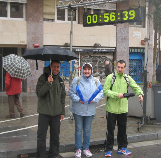 1maraLa marató de Barcelona començava a Plaça Espanya a les 8:30 del matí, sota una suau pluja que va acompanyar els maratonians durant tota la cursa, però per sort no va fer gaire fred, cosa que hauria estat demolidor pels atletes. El circuit de la cursa passa pels llocs més emblemàtics de la ciutat, amb gran ambient al carrer tot i la pluja i una gran organització.