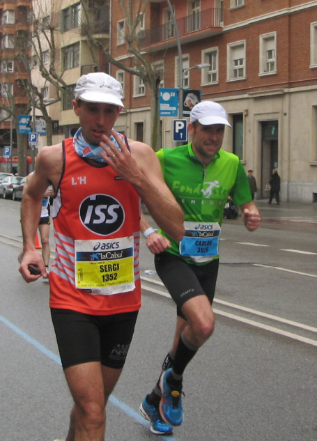 He anat a un ritme constant i sense forçar, he passat la primera meitat bastant bé i una mica eufòric, gràcies als ànims del Rachid, Luque, Vicente, etc. He corregut amb bastant de cap i sent conscient que era la primera marató. A partir del kilòmetre 38 m’ha agafat la famosa ¨’pájara’ iera qüestió d’ acabar-la. Molt content pel temps.
