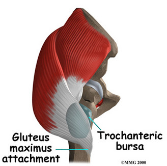 El gluti major participa activament sobre el tensor de la fàsica lata, perquè subjecta aquest tendó. Al caminar o córrer, el gluti major tracciona aquest tendó sobre el trocànter major en cada pas. Quan el tendó està tens, frega contra la bursa. La fricció provoca una irritació i una inflamació de la bursa. També pot haver fricció si un altre múscul de la zona (gluti mig) és dèbil.