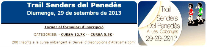 La cursa de iniciació en la muntanya la Trail Senders del Penedès que organitza l’Ajuntament de les Cabanyes i que és celebrarà el proper 29 de setembre, va obrir les inscripcions el passat més de juny i ja supera els 200 inscrits, tot un record per que encara queda més de 2 mesos per que arribi la data de la seva celebració, i de continuar en aquesta línia pot arribar als 500 inscrits en la cursa llarga de 12,7 kms i 200 inscrits a la curta de 5,5 kms que ha posat  l’organització de límit abans del diumenge dia 22 de setembre data límit per fer les inscripcions o quan s’arribi als límits d’inscrits.