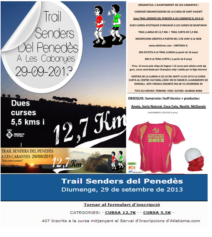 Les inscripcions es poden fer exclusivament a la web d’atletisme.cat, es cursa de la lliga internet de champion chip i tota la informació de ella a la seva web http://trailsendersdelpenedes.wordpress.com/