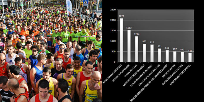 La Mitja marató de Sitges encapçala la participació amb 2.077, seguida de la de Vilanova amb 822 i Espirall amb 420, que va baixar  231 atletes.