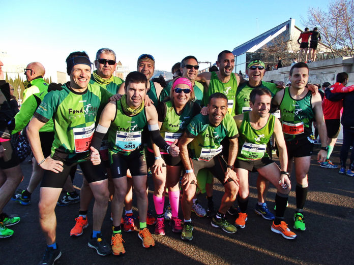 La 37º marató de Barcelona donava la sortida a les 8:30 amb una temperatura de 7 graus, poc a poc s’anaven omplint els carrers de la ciutat de maratonians, una marató amb un preciós circuit ja que passa pels llocs més emblemàtics d’ell, Camp Nou, la Pedrera, la Sagrada Família, Pont de Calatrava, Torre Agbar, litoral amb el mar Mediterrani de fons, parc de la Ciutadella, Arc de Triomf, Plaça Catalunya, Catedral, Colon, Paral·lel i plaça d’Espanya, amb un recorregut molt sinuós i poc propici per fer grans marques, degut als canvis de desnivells que hi havia en alguns trams, sobre tot al final que està la part més dura, al fina la temperatura pujava fins els 13 graus i arribaven 15.500 herois dels quals 10 eren de Fondistes Penedès.