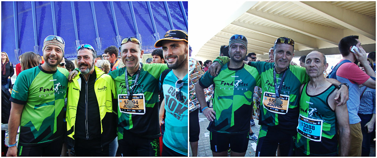 La marató de Valencia va estar espectacular, amb una participació de 16.000 herois/nes, un circuit pla, el més ràpid d’Europa, amb una perfecta organització i amb una ciutat abocada amb els maratonians/nes, molta gent animant, entre els herois hi havia 4 de Fondistes Penedès que van viure al igual que tots el gran handicap de la forta calor i humitat regnant a partir de les 11 del matí ja que va pujar la temperatura de 13 als 20 graus arribant als 25 a les 12, endurint molt l’ultima part de la marató.