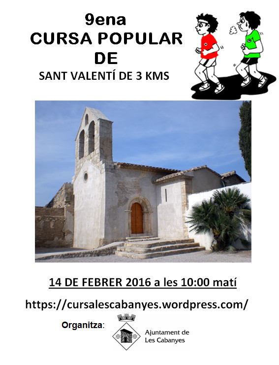 Un any més l’Ajuntament de les Cabanyes juntament amb la comissió de curses de les Cabanyes tiren endavant la Cursa de Sant Valentí que serà la 9ena edició i ja té la data assignada, serà el 14 de febrer del 2016, tornant a coincidir amb la festa petita del poble, la sortida serà a les 10 del matí i les inscripcions s’obriran el 20 de gener i seran gratuïtes com les 8 edicions anteriors.