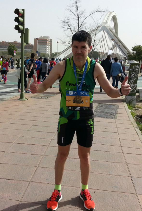 “Una marató molt rapida per una ciutat espectacular i sobre tot els últims km de la prova passa pels llocs mes macos de Sevilla , la part no tant bona la temperatura de 21° , he anat molt be fins el km35 desprès donant la volta al rellotge I disfrutant de la cursa !!”.