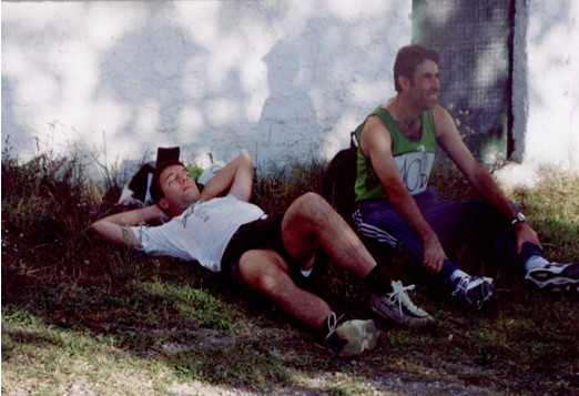 S’HAN TRENCAT TOTES LES TÈCNIQUES D’ESTIRAMENTS, ESCALFAMENTS, EXERCICIS, ETC. ABANS D’UNA DURA COMPETICIÓ, COM LA CRONO ESCALADA, EL PEP AMELL ES VA DEDICAR A FER LA “SIESTA”, MENTRE QUE ELS ALTRES JA ESTAVEN EN CURSA.
