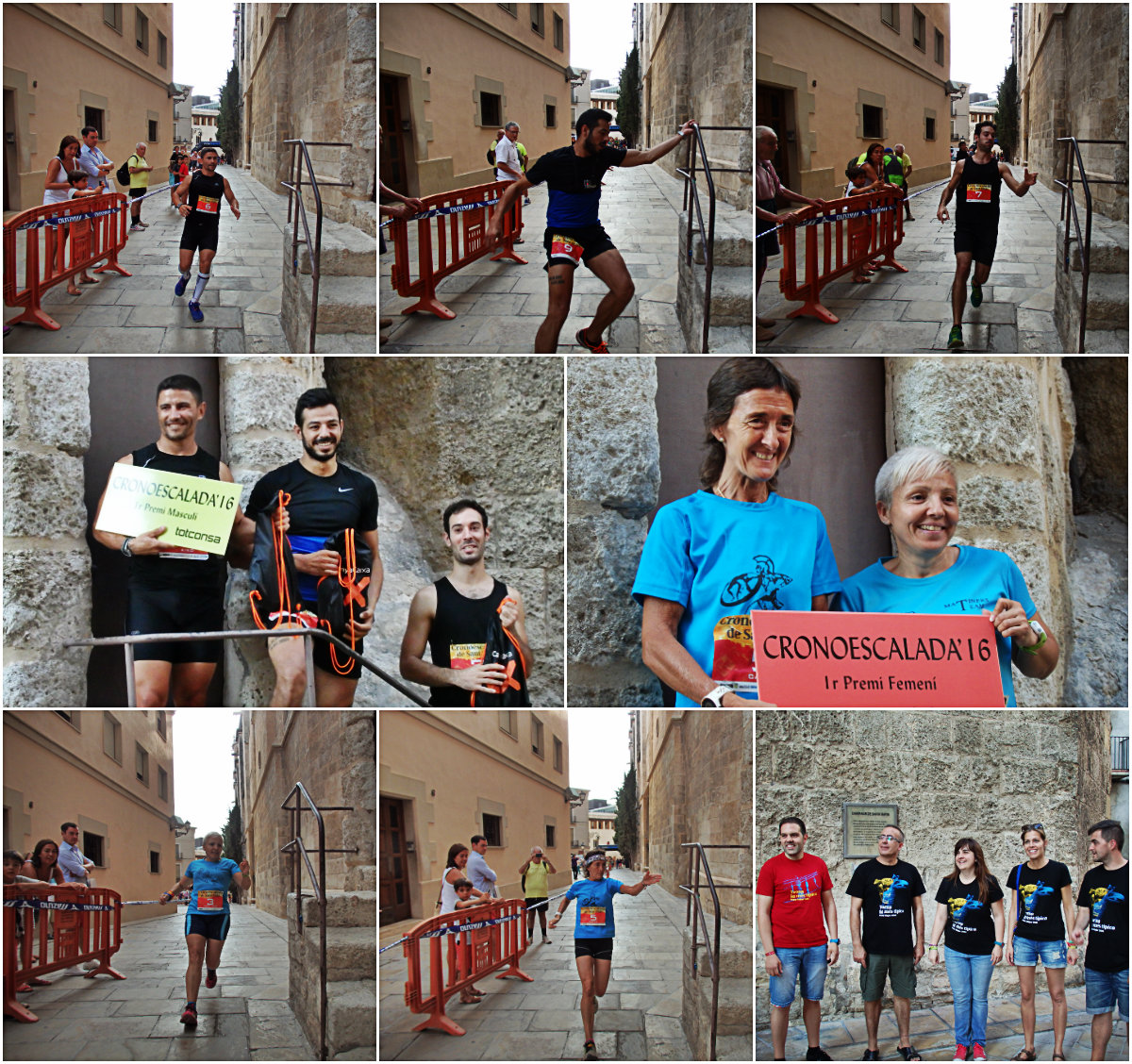 A les 18h es donava la sortida al primer atleta de la cronoescalada al campanar amb sortida a la plaça de Santa Maria, tot seguit s’encaraven els 116 graons per arribar al cim del campanar de la basílica, van participar 11 atletes, sent el Kiko Bendicho el guanyador amb 60 segons, el segon lloc va ser pel Carles Màrquez amb 62 segons i el Aleix Masferrer tercer amb 63 segons.