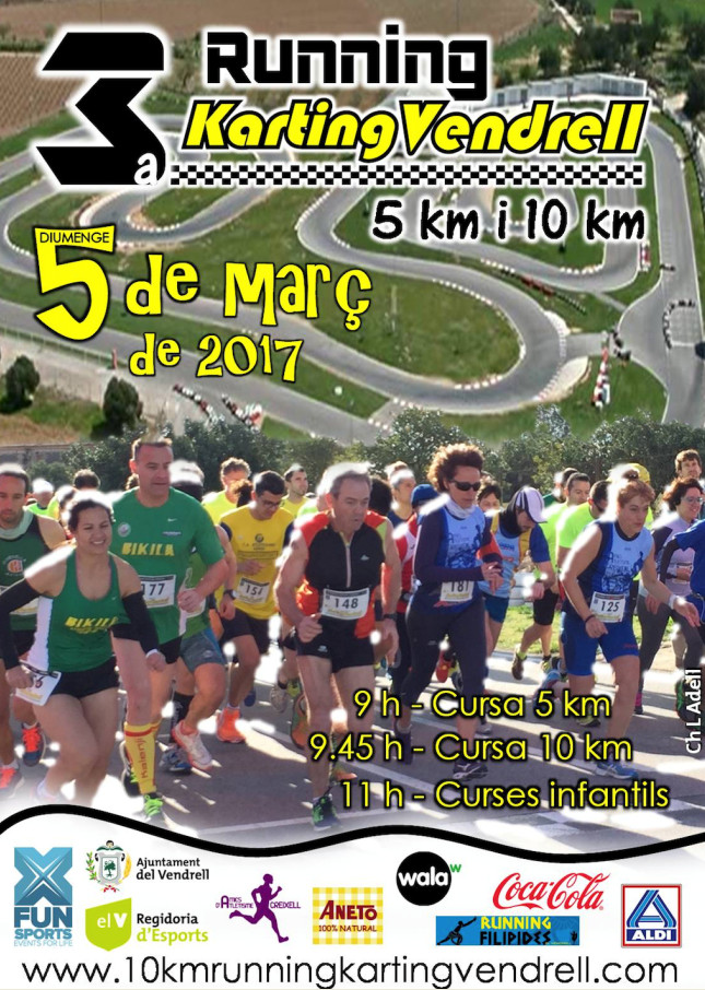 L’ajuntament del Vendrell i Karting Vendrell organitzen conjuntament amb Fun Sports la 2ª Cursa 5 i10Km Karting Vendrell, que es celebrarà el proper diumenge 06 de març de 2016.