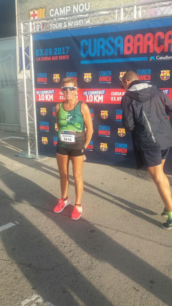 2.165 atletes corrien 10kms a Barcelona a la cursa del Barça en la que participava la nostre atleta, al Maribel Fernández amb un crono de 51’26, passava pel km 5 en 24’46, era la seva 1era cursa de 10k de la temporada.