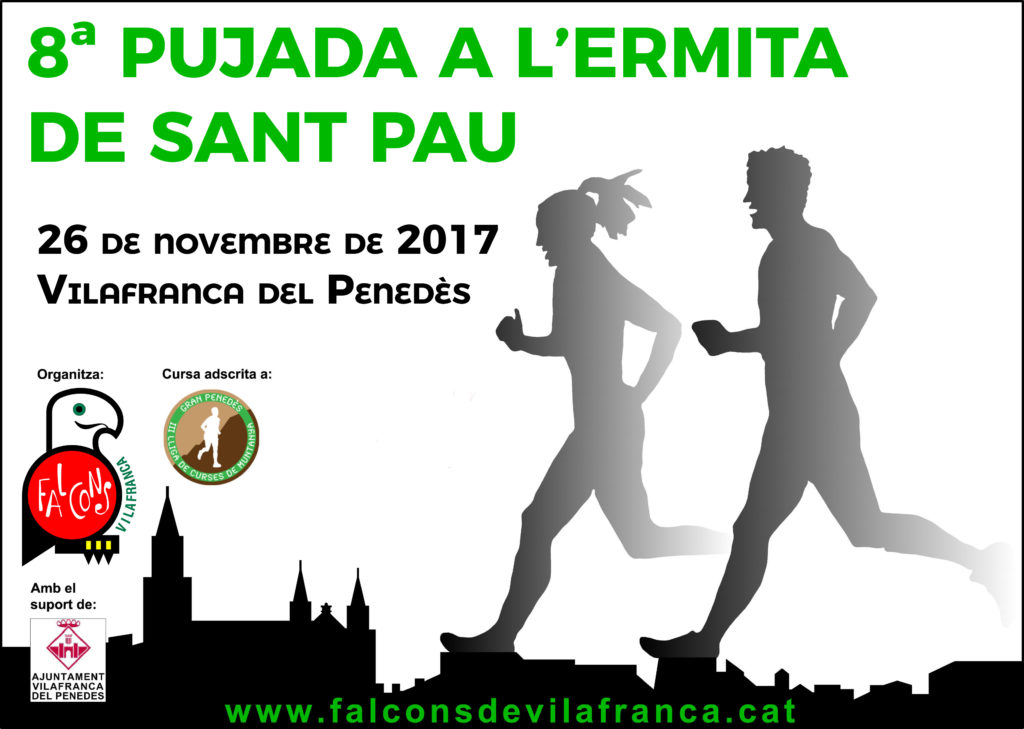 El 26 de novembre tindrà lloc a Vilafranca la clàssica cursa de muntanya Pujada a l’Ermita de Sant Pau de 10 kms, organitzada pels Falcons de Vilafranca, una gran cursa amb sortida i arribada al pavelló esportiu de Vilafranca, la sortida serà a les 10,30 del matí, no hi pots faltar.