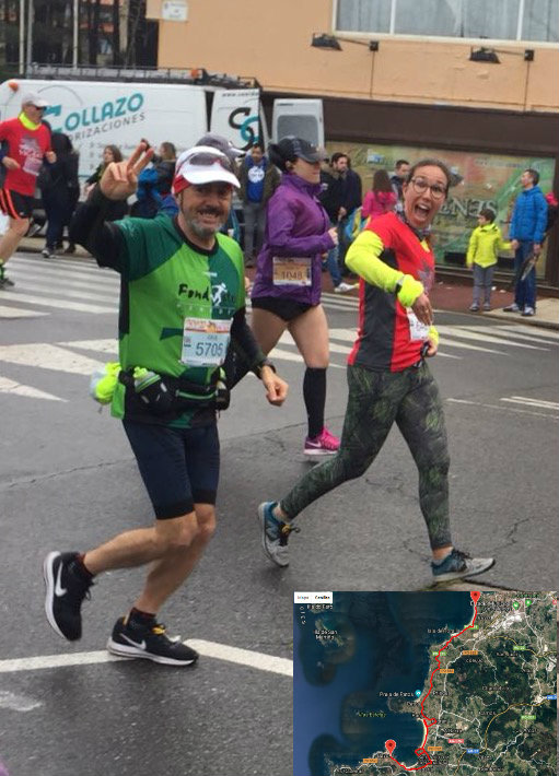 “Cursa lineal, de pujades i baixades en els primers 12k, per el litoral de la Ría de Vigo molt atractiva!!. Día plujós, temperatura de 10°c., molt bona organització, molt recomenable, m’he trobat força be.”