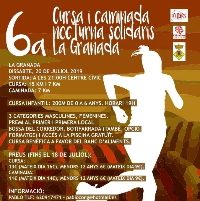 El proper dissabte a les 21h es donarà la sortida a la 6ena edició de la Cursa solidaria de la Granada.