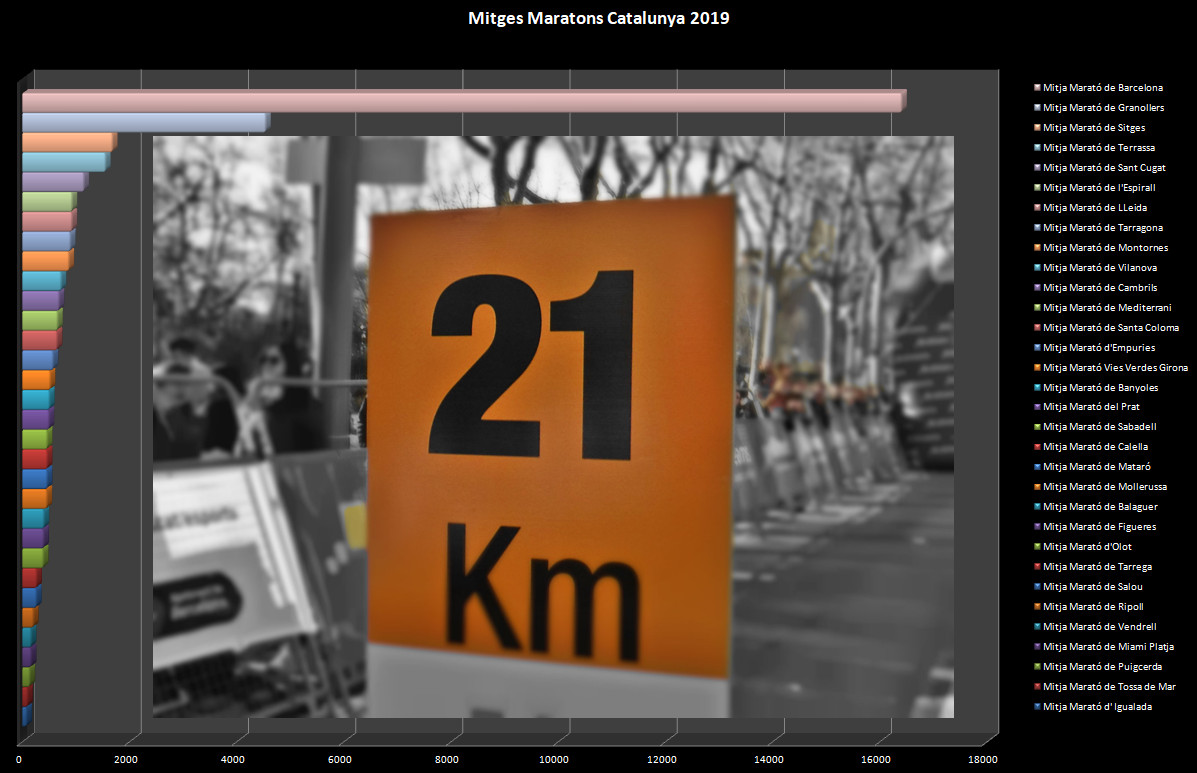 La mitja marató amb més participació ha estat un any més la de Barcelona amb 16.404 atletes, pujant un 20% respecte al 2018 i sent xifra record de la prova i de Catalunya, seguida de Granollers amb 4.536 que pujava un 2% amb respecte al 2018 i Sitges 3era amb 1.676 atletes aquesta pujava un 5%, Terrassa és quarta amb 1.547 i Sant Cugat cinquena amb 1.144, aquesta prova va ser Campionat d’Espanya.