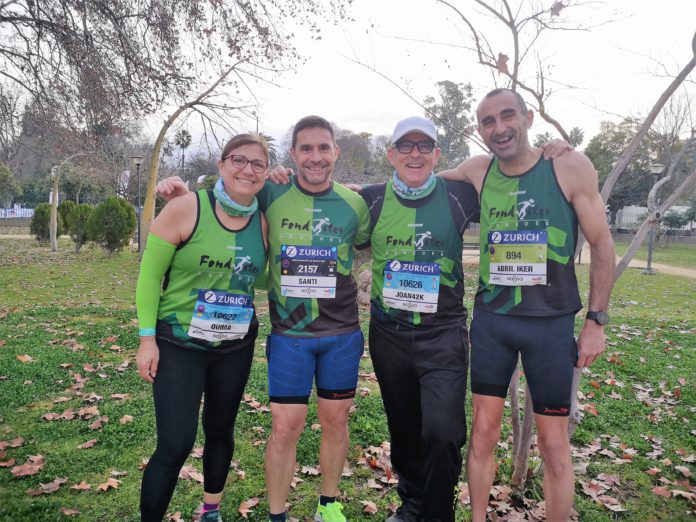 “Vènia a Sevilla a gaudir el que pogués ja que no vènia bé, això de fer una marató 3 mesos després de l’altra és una bogeria que no ho tornaré a fer més, et carrega molt psíquica i físicament, total que vaig sortir a 130 pulsacions i anar menjant kms el ritme no m’importava gens ni mica,tant sol volia acabar, gaudia molt fins que en el km 15 veig a la Quima parada, em vaig ensorrar, no m’ho creia, Quima tenia molta feina darrere de les seves cames, no li tocava viure la part més amarga i dura de la marató, l’abandonament, em vaig parar i vaig veure que la cosa no pintava bé, pel qual ho primer és ho primer i abandonava amb ella, només em quedava acompanyar-la en l’autobús de la cua i animar-la en la mesura que podia, el silenci interior es va convertir en un crit de ràbia i de impotència al mateix temps, em volia canviar per ella, volia que continués corrent, no era just era la seva marató, les mirades de tots dos pèrdues ho deien tot, van ser moments durs, però és el risc que tenim que viure quan ens posem a la línia de la sortida, em va saber molt de greu, però tornarem”.
