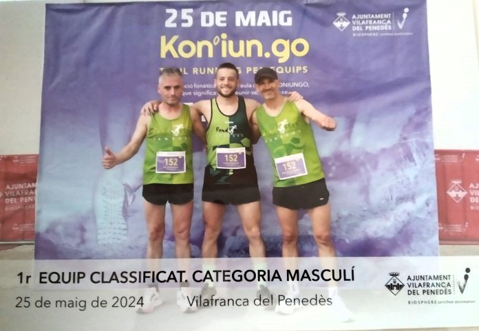 A Vilafranca s’ha fet la segona edició de la cursa Koniungo de 9,6 kms un recorregut preciós que tot és fa per camins penedesencs al costat de les Vinyes, sortida i arribada a la zona esportiva, cursa especial perquè no es fa individual, s’ha de fer per equips i a més tots els components han d’arribar en el mateix crono: